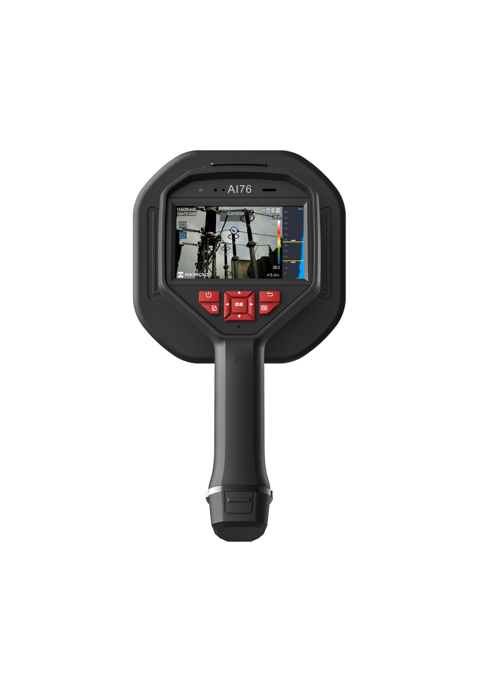 La HIKMICRO AI76 es una cámara de imagen acústica profesional diseñada para la detección de fugas de gas, fugas de aire comprimido y descargas parciales en sistemas eléctricos. Incorpora 136 micrófonos MEMS de bajo ruido y un rango de frecuencia ajustable de 0 kHz a 96 kHz, permitiendo localizar fuentes sonoras en tiempo real con alta precisión.
